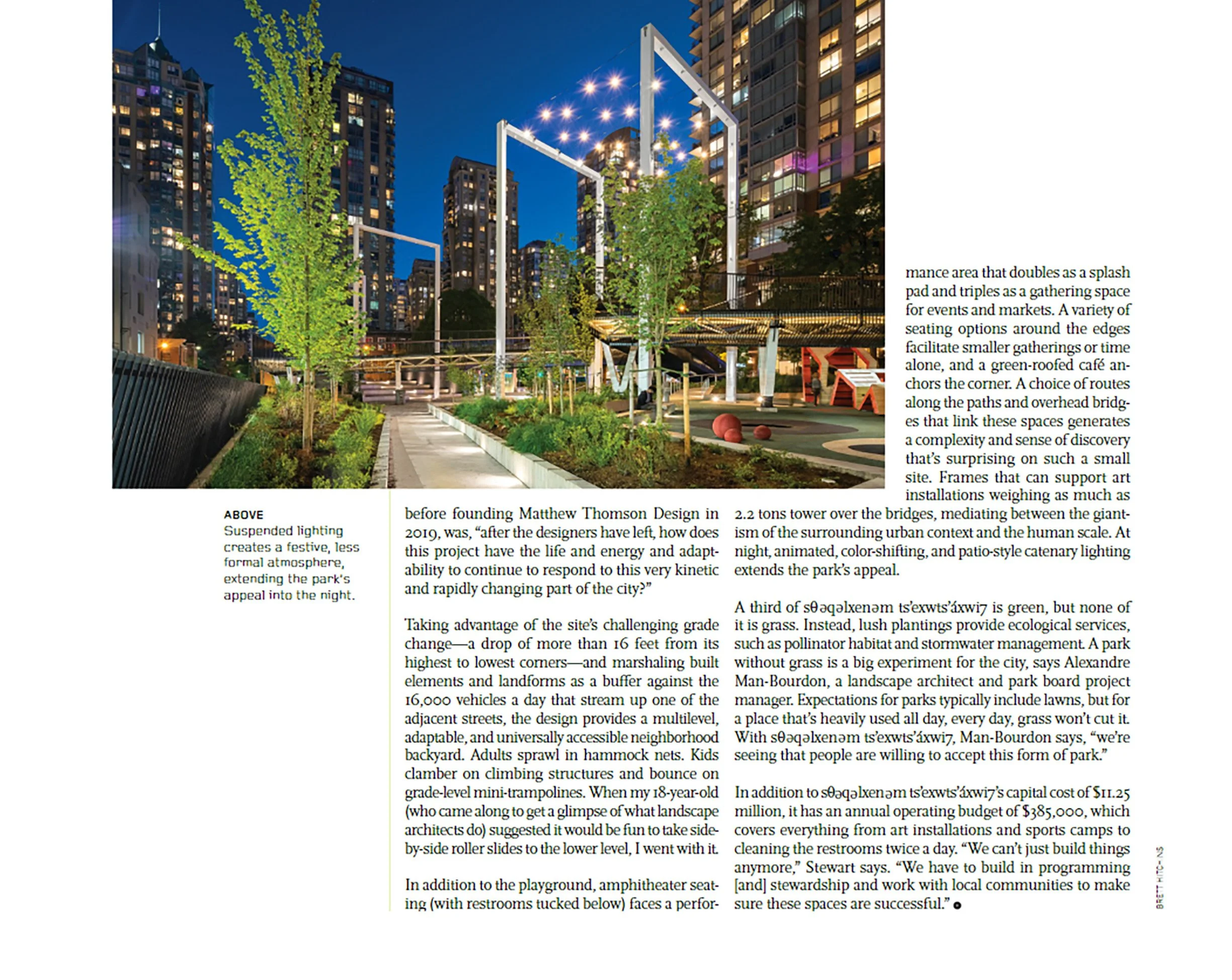 sθәqәlxenәm ts'exwts'áxwi7 (Rainbow Park) Recieves a csla award of excellence